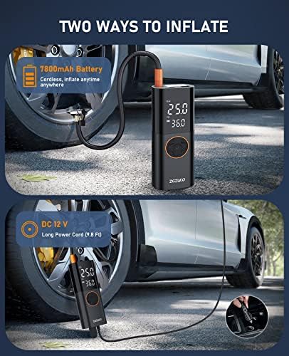 ZGZUXO Tire Inflator Portable Air Compressor, 150PSI 2X Fast Cordless Air Pump 7800mAh Battery & 12V DC Dual Power Electric Tire Pump with LCD Dual Screen for Car Motorcycle Bike Ball, Car Accessories